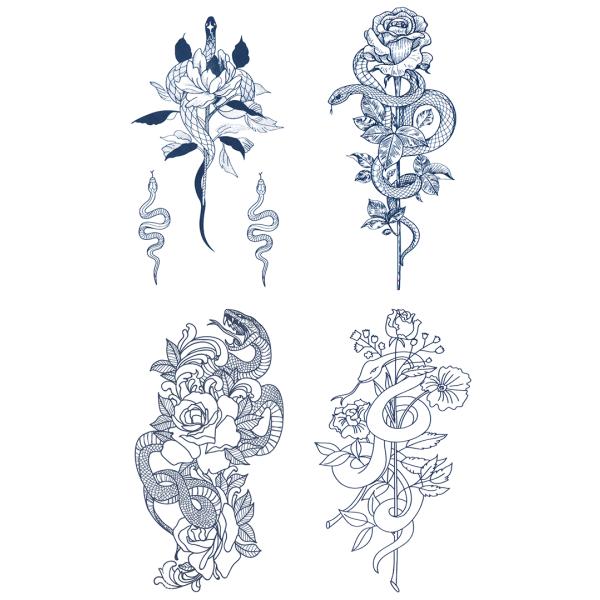 ジャグアタトゥー タトゥーシール 2週間で消えるタトゥー ヘナタトゥー 本物志向 蛇 薔薇 4枚セット