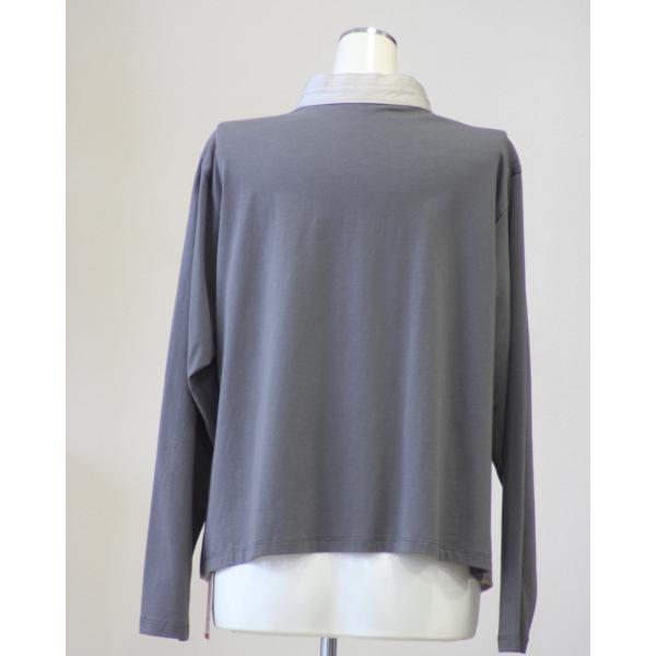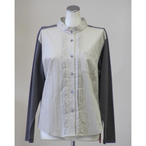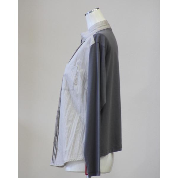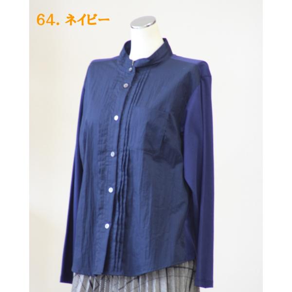 あむう AMU Akane クラッシュブラウス ワッシャー加工 シャツとジャージ素材の組合せ