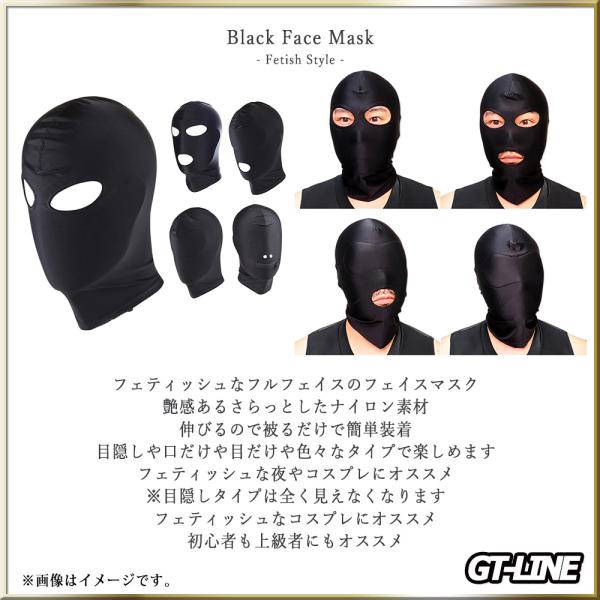 覆面 フェイスマスク フルフェイス 目隠し SM ブラック メンズ レディース 全頭マスク 全タイ コスプレ 口開き フェティッシュ 拘束具 GT-LINE