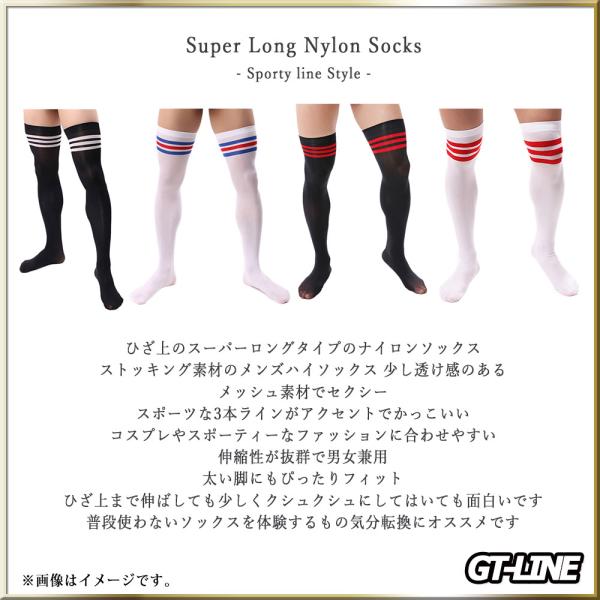 スーパーロング ナイロンソックス ストッキング ハイソックス ナイソ ひざ上 靴下 メンズ ロングソックス メンスト 太もも 透け透け 男女兼用 GT-LINE Favolic