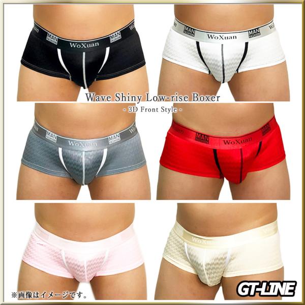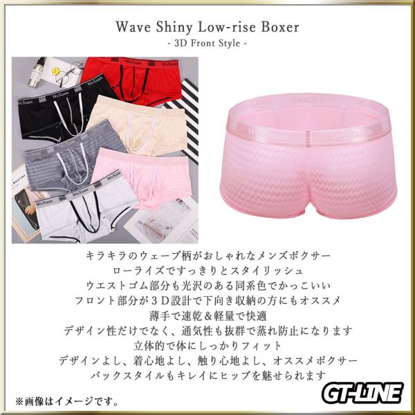ウェーブ シャイニー ボクサー 光沢 ローライズ キラキラ スタイル 3D 速乾 ドライフィット 冷感 アイスシルク もっこり プリケツ GT-LINE Favolic