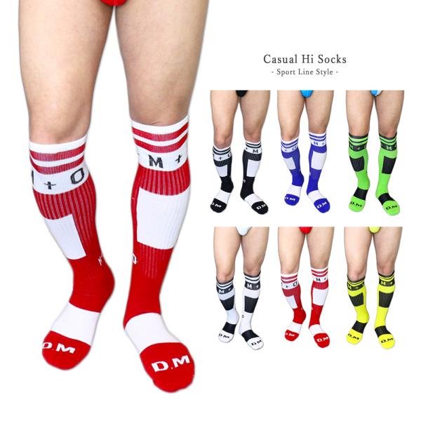 ライン ハイソックス スポーティー ロングソックス メンズ 靴下 カジュアル スポーツ サッカー ソックス ラグビー 26-28 父の日 男性 GT-LINE Favolic