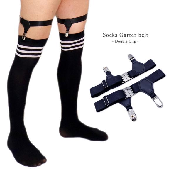 太もも用 ソックス ガーターベルト ダブル クリップ式 靴下 ロングソックス サスペンダー ナイソ 男女兼用 ゴムベルト セクシー ビジネス GT-LINE Favolic