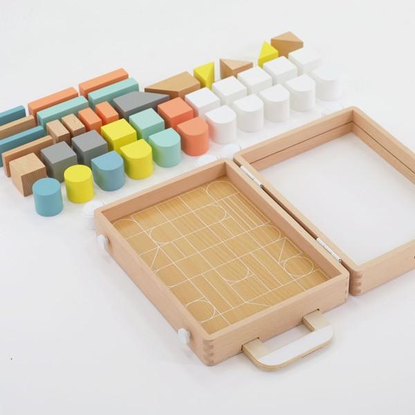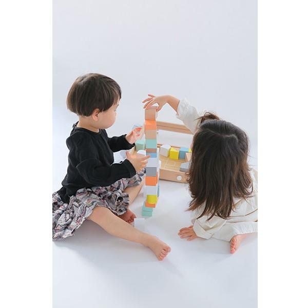 シンプルなので、家族みんな、誰でも遊びに加わることができる積み木セット。