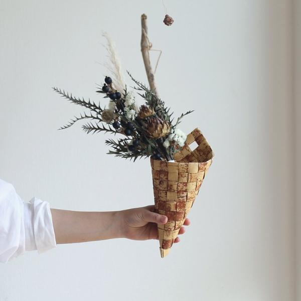 ラトビアの手仕事 白樺の円錐バスケット 白樺細工