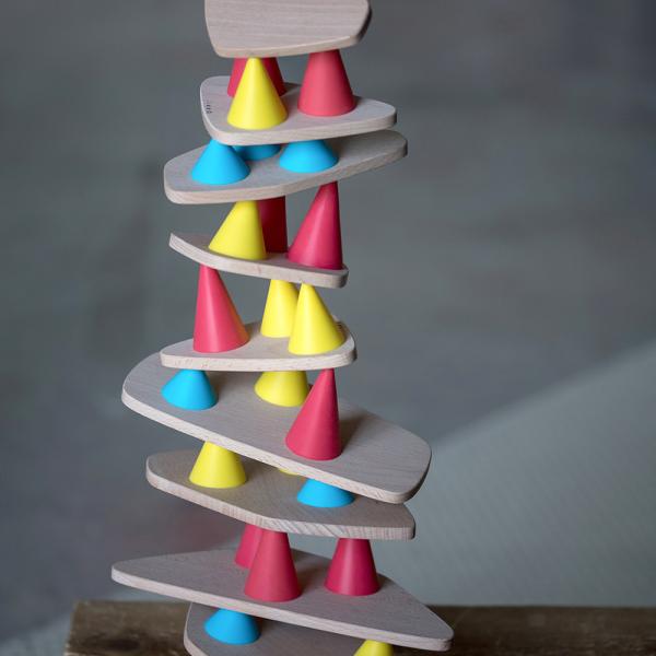 従来の積み木より複雑な積み上げ遊びを楽しめ