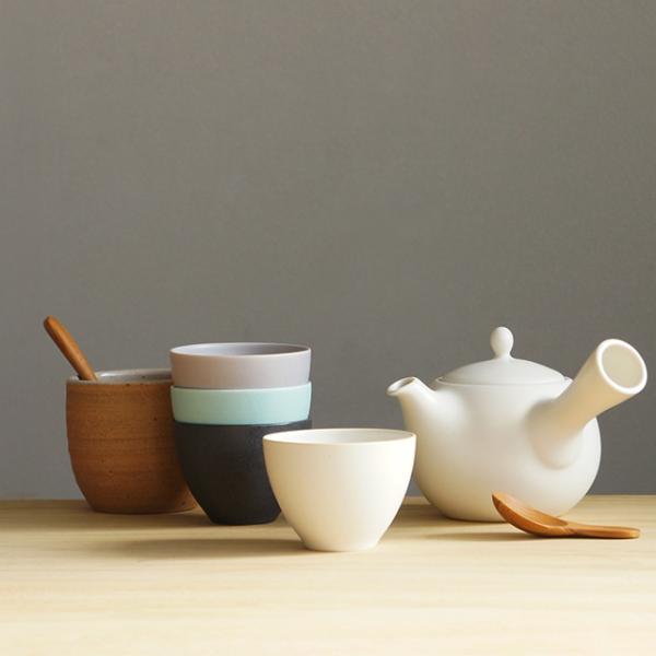 SALIU YUI 結 土瓶急須(おしゃれ 北欧 日本製 白 結婚祝い 食器 新築祝い 引っ越し祝い プレゼント 取っ手 木製 シンプル 二人用 茶器 ティーポット 陶器)