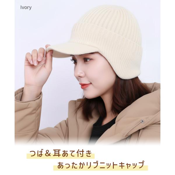 つば&耳あて付き◎あったかリブニットキャップ