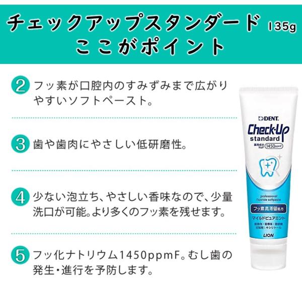 ライオン チェックアップスタンダード 135g × 2本セット マイルドピュアミント 歯磨き粉