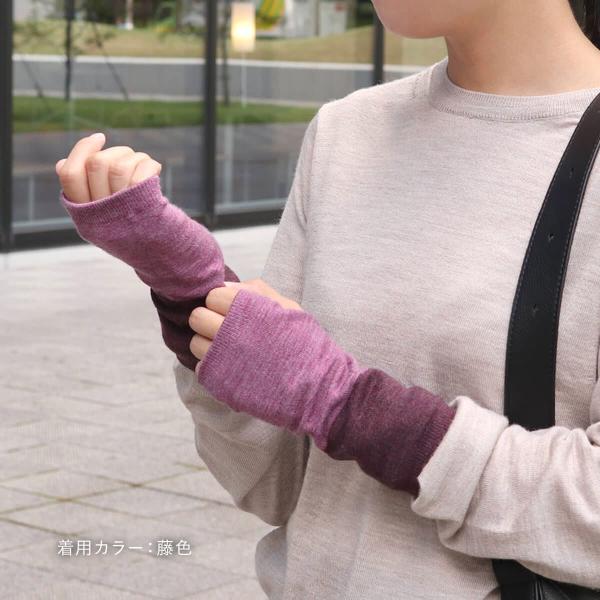 アームウォーマー レディース 内側シルク ウール混 2重編み ハンドウォーマー 指なし