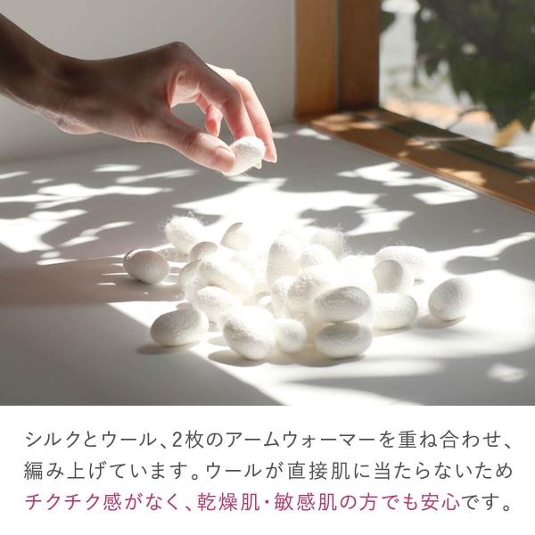 肌にあたる内側はシルク100%、外側にウールを使用したアームウォーマー。