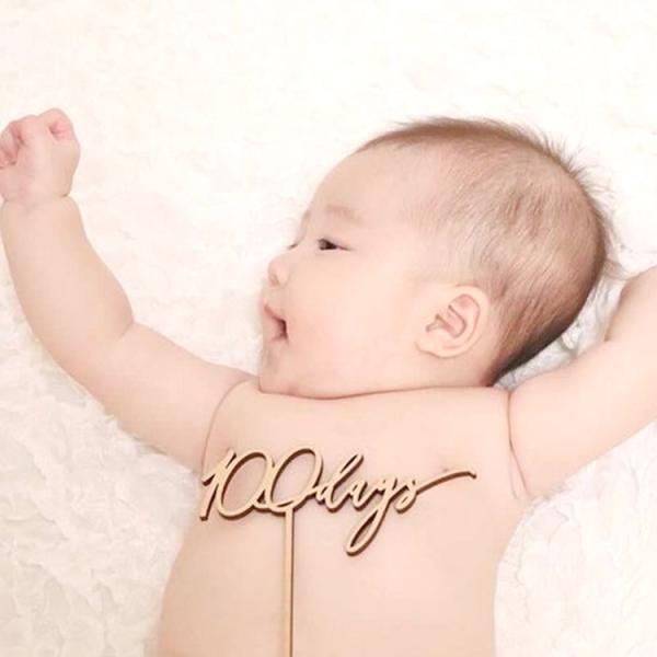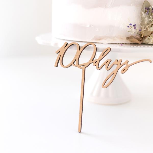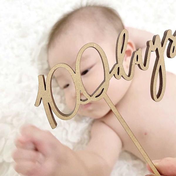 ケーキトッパー 100days 木製 お食い初め 100日記念日 ベビーアルバム 赤ちゃん おしゃれ かわいい 飾り 出産祝い 誕生日 祝百日 cake00006