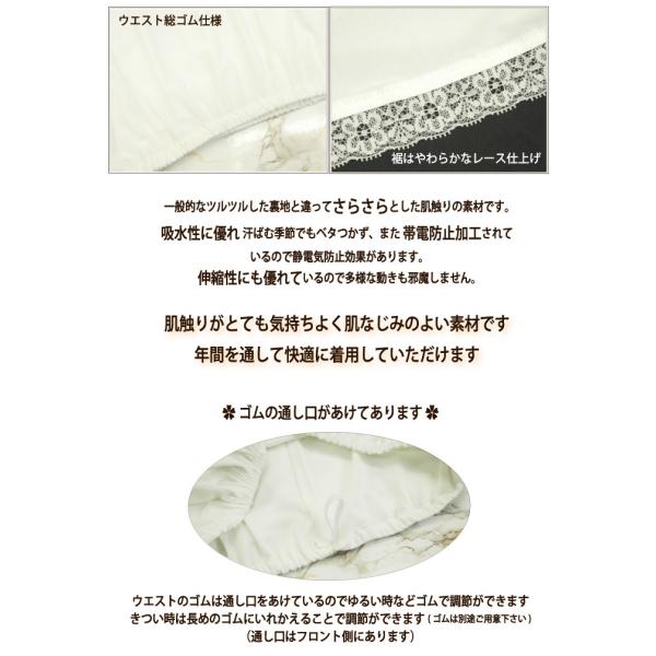 スカートやガウチョパンツ、ワンピースやドレスなどのインナーとして年間を通して快適にエレガントに着用いただけます。