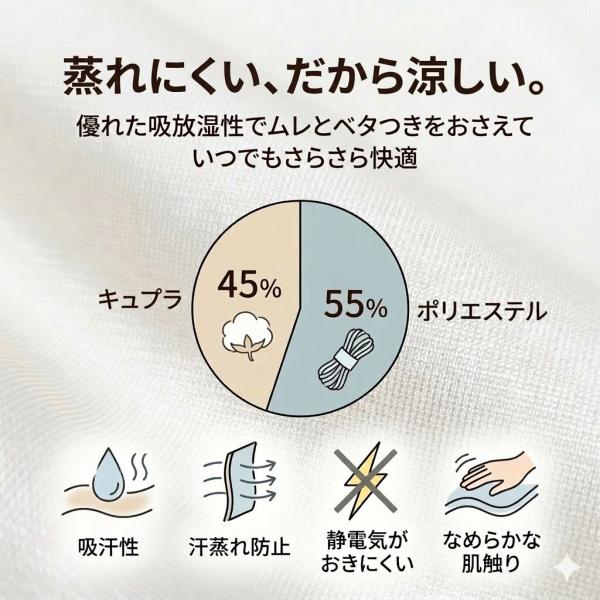 吸湿性・放湿性にも優れているので衣服内のムレやベタつきを抑えます。