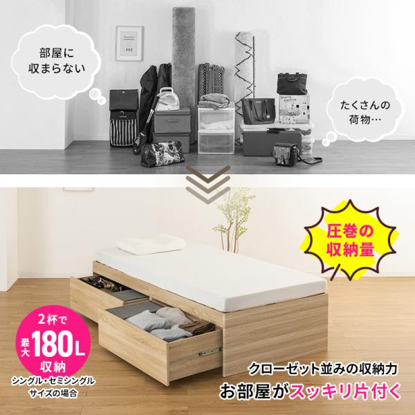 大容量 ヘッドレス ヘッドレスベッド 収納ベッド シングル チェストベッド ベッドフレーム 収納付き 引き出し付き 2杯ベッド すのこベッド 容量約180L
