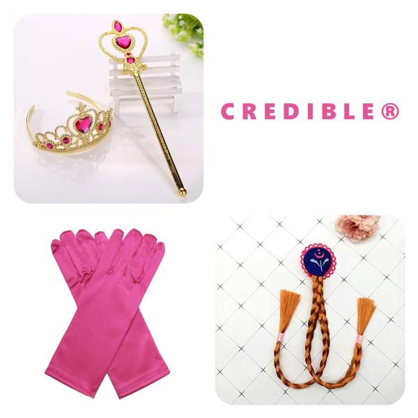 アナ ドレス 子供 コスプレ 衣装 4点 セット ( プリンセス ドレス、グローブ、ティアラ、ステッキ ) 100 110 120 130 140 CREDIBLE