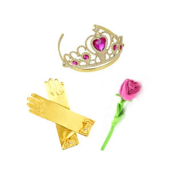 美女と野獣 ベル ドレス コスチューム 豪華4点セット ( プリンセスドレス , リボン付グローブ, ハートのティアラ, 薔薇のお花)
