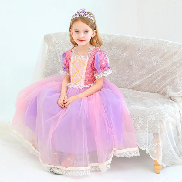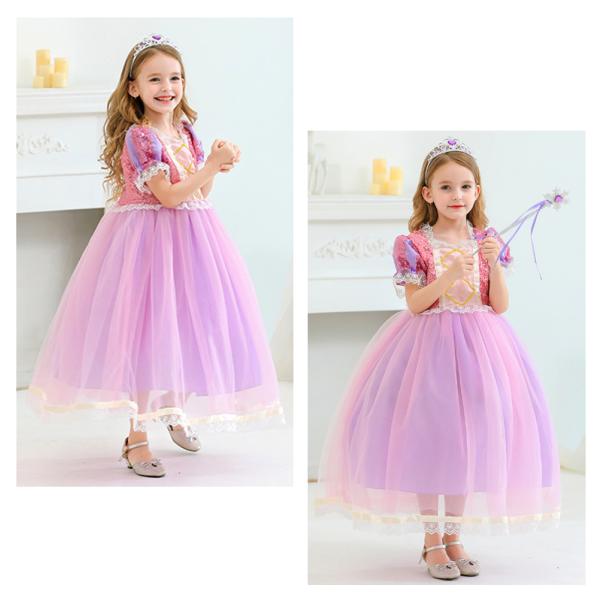 ラプンツェル ドレス 子供 コスプレ 衣装 プリンセス 半袖 仮装