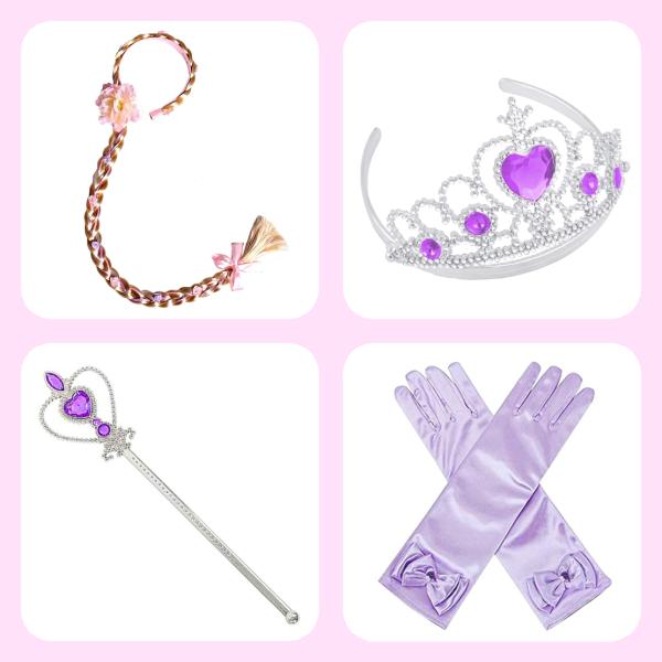 ラプンツェル ドレス 子供 コスプレ 衣装 豪華5点 セット ( プリンセス ドレス,お花の髪飾り,手袋,ティアラ,ステッキ ) 100 110 120 130 140 CREDIBLE