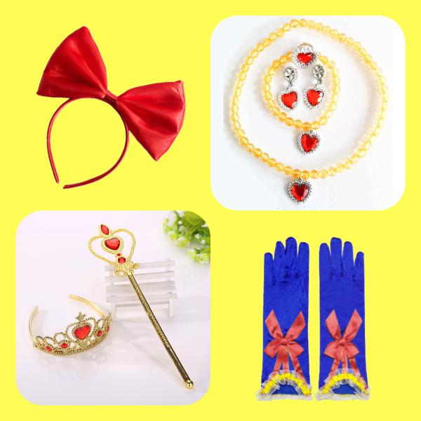 白雪姫 プリンセス ドレス コスチューム 豪華10点 セット ( プリンセスドレス , マント , リボンカチューシャ, 手袋, 魔法のステッキ , ティアラ , ネックレス , イヤリング , 指輪 , ブレスレット)