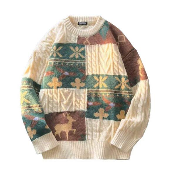プルオーバー メンズセーター 秋冬 長袖 クルーネック 防寒 暖かい クリスマス系 かっこいい ニット 切り替え ベーシック 柔らかい