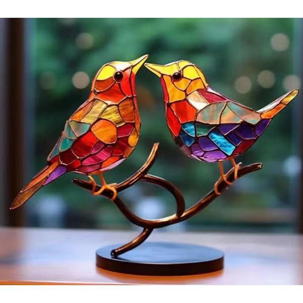 枝の上の鳥 アクリル 小鳥 置物 鳥 癒しグッズ 鳥のオブジェ カラフル デコレーション ステンドグラス 可愛い 鳥のオブジェ 鳥 壁装飾