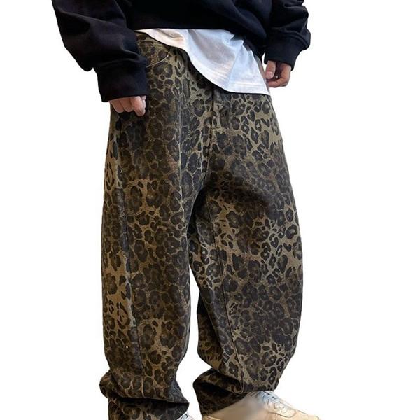 メンズパンツ レオパード柄 ゆったり オーバーサイズ ワイドパンツ 個性 ヒップホップ ストレート カジュアル ヒョウ柄 ストレートパンツ