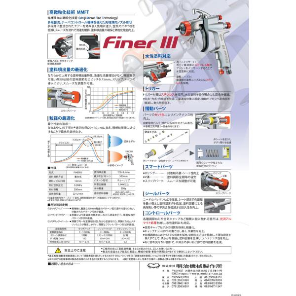 明治 Finer III スプレーガン(口径1.4mm)+4GF-Uステンレスカップセット ,重力式 / 自動車補修専用スプレーガン,FINER3,明治機械製作所