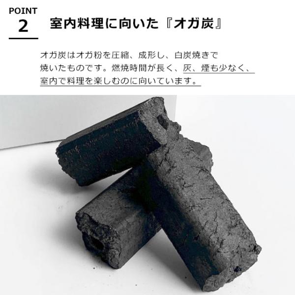 また、灰や煙が少ないため、室内で炭焼き料理を楽しむのに最適です。