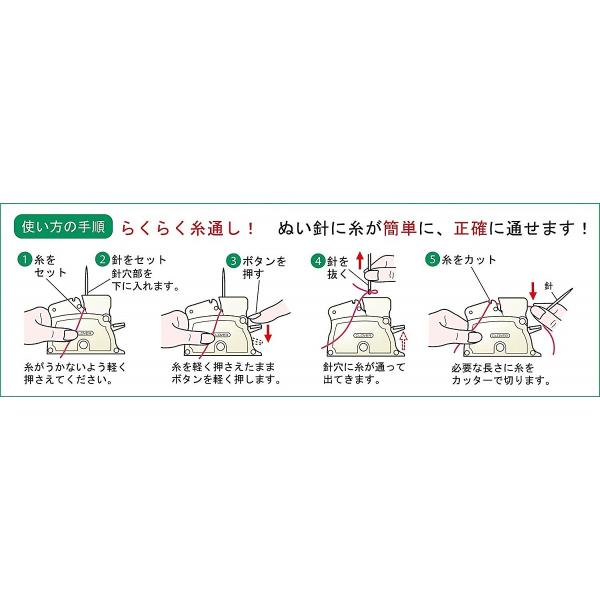 縫い針に糸が簡単に、確実に通せます。