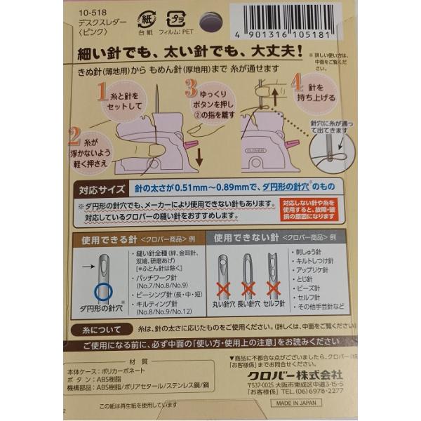 Clover デスクスレダー 卓上型糸通し器 ピンク 10-518
