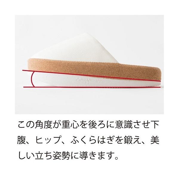 ・足底部分に角度がついている為、重心を後ろに意識させ下腹、ヒップ、ふくらはぎを鍛え、美しい立ち姿勢に導きます。