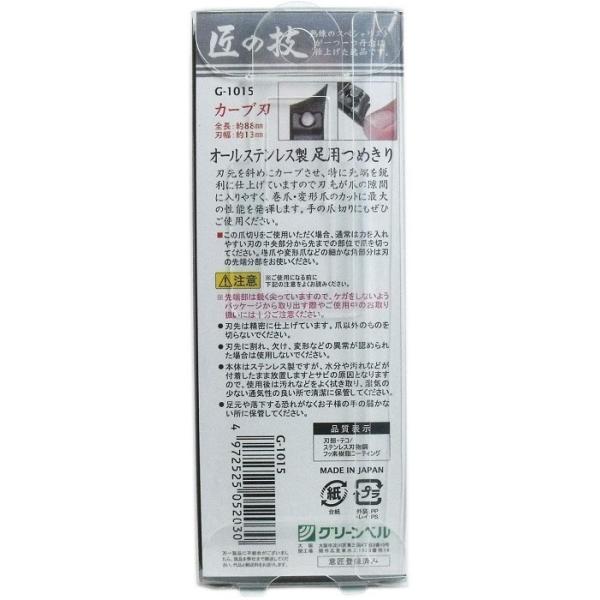 匠の技 オールステンレス製 足用つめきり(カーブ刃) G-1015 爪切り ポスト投函