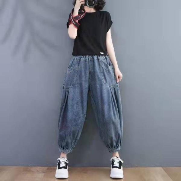 アンクル丈 ジョガー サルエル デニムパンツで太ももゆったり