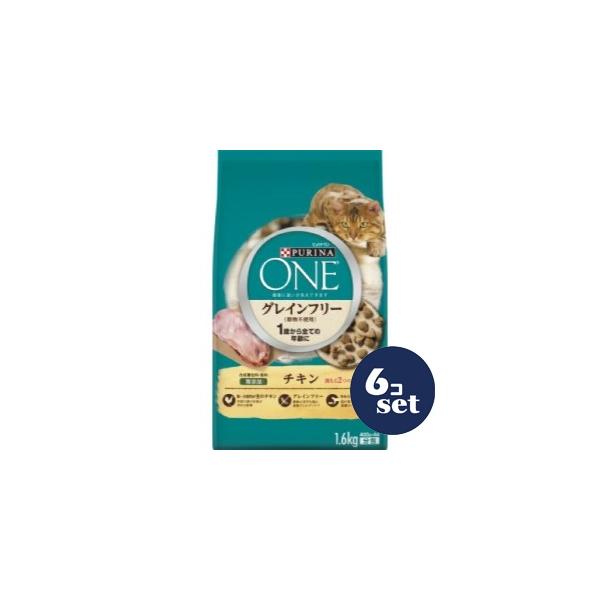 「セット販売」「ネスレ日本」ピュリナワン キャット ドライ グレインフリー 1歳以上 チキン 1.6kg 6個セット