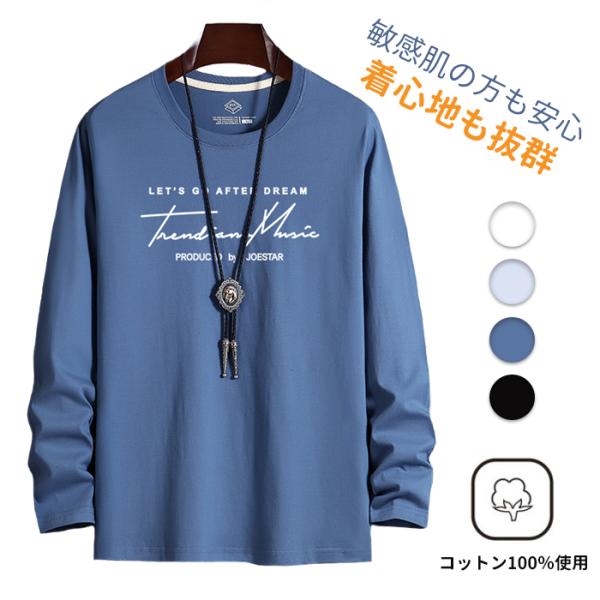 長袖tシャツ メンズ tシャツ 大きいサイズ ロンt 秋 綿100% カットソー 無地 おしゃれ アメカジ ロゴ入り ストリート 30代 40代 50代