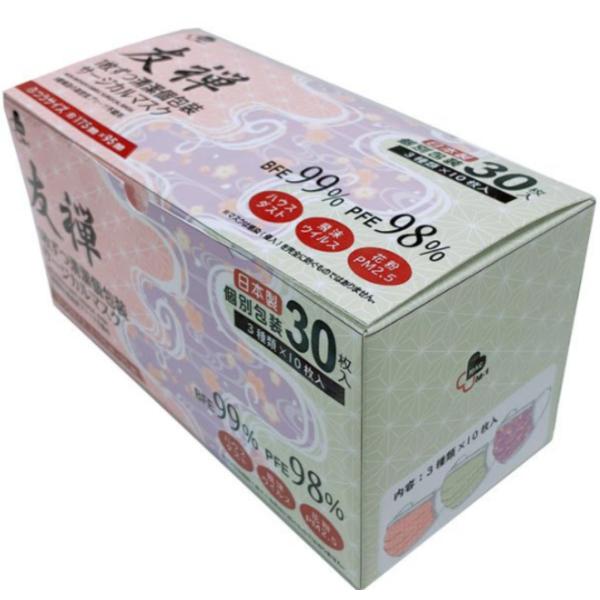 <日本製>【個包装】友禅サージカルマスク 30枚入り BOX