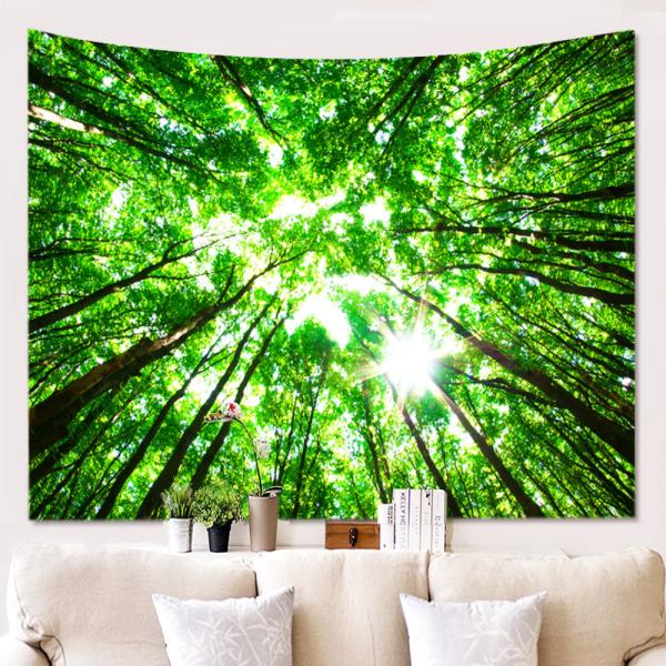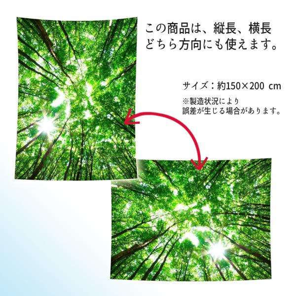 タペストリー 風景 おしゃれ 大判 森林 新緑 縦横自由 みどり 木漏れ日 木の葉 リモート 背景布