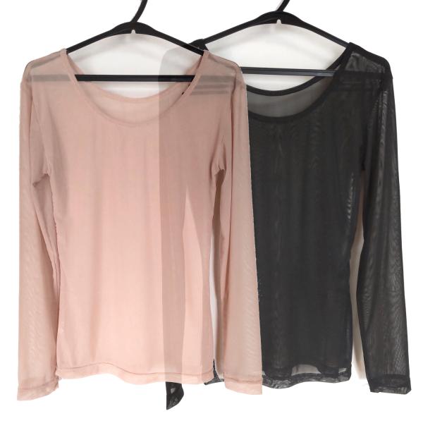 シースルー シャツ 長袖 アンダーシャツ ダンス インナー 透け感 ストレッチ 社交ダンス ベリーダンス ボディファンデーション 黒 ブラック ベージュ