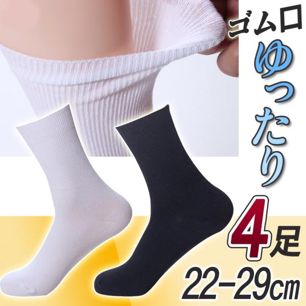 靴下 ゴム口ゆるい メンズ レディース 4足セット きつくない やわらか ソックス 子ども用 介護 はきやすい 22cm 23cm 28cm 大きいサイズ