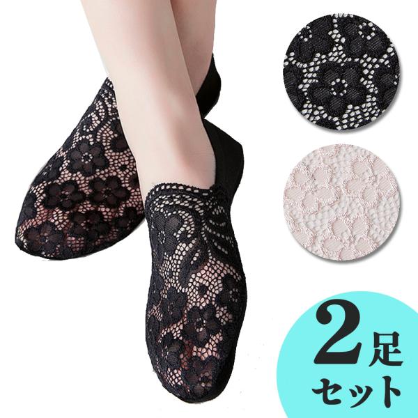 2足セット かわいい ルームソックス ボートソックス フットカバー 花 フラワー レース/春 夏 レディース はきやすい 薄手 涼しい ピンク 黒 ブラック