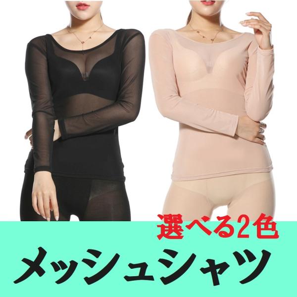 シースルー シャツ 長袖 アンダーシャツ ダンス インナー 透け感 ストレッチ 社交ダンス ベリーダンス ボディファンデーション 黒 ブラック ベージュ
