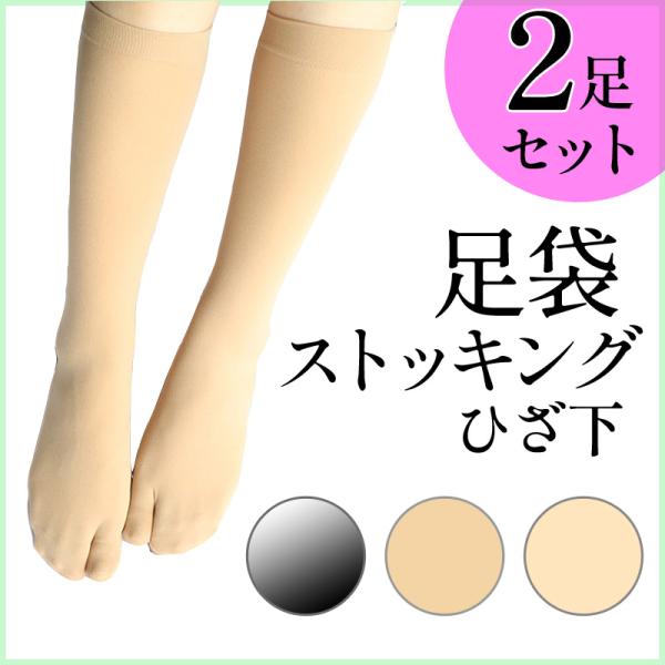 足袋 タビ タイツ ストッキング 2足セット ひざ下 2指 ソックス ベージュ 黒 防寒対策