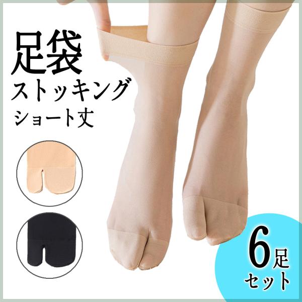 6足セット/ 足袋 タビ ストッキング ソックス ショート丈 2指 ベージュ 黒