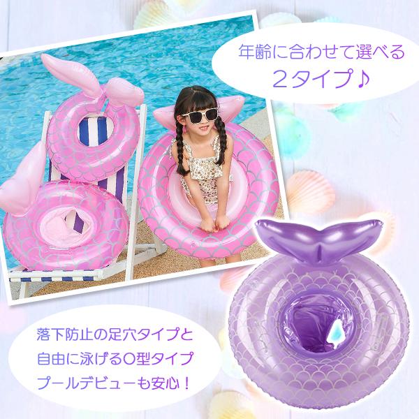 マーメイドフロート キッズ 足穴 O型 ピンク パープル 浮き輪 子供 女の子 人魚 尾びれ 足入れ O字 映え 水遊び プール 海 ビーチ リゾート レジャー 夏休み