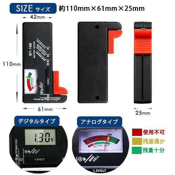 電池チェッカー バッテリー チェッカー 乾電池 テスター 電池 残量 測定器 計測 アナログ デジタル ボタン電池 チェック 小型 軽量