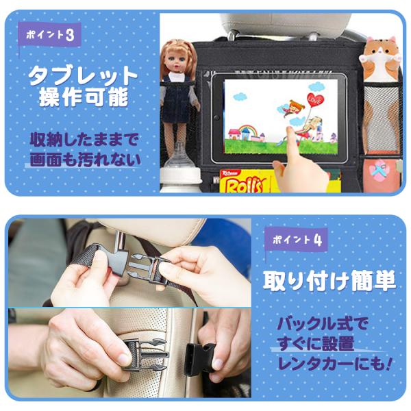 シートバックポケット ティッシュ 車 収納 ポケット キックガード 傷 汚れ 防止 後部座席 子供用品 カバー 収納 ドリンクホルダー