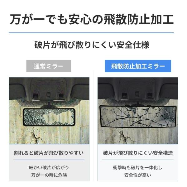 ルームミラー 車用 ワイド 曲面ミラー 広角 曲面鏡 高反射 緩曲面 鏡 バックミラー 汎用 クローム鏡 飛散防止 視界拡大 ドライブ 安全 運転 取付簡単 SUV ミニ