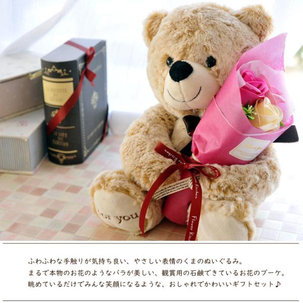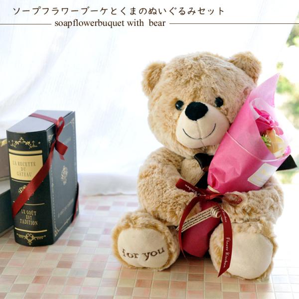花とぬいぐるみのギフトセット くまのぬいぐるみと「フェアリー ソープブーケ」 花 おしゃれ 誕生日 ソープフラワー 女性 お花 出産祝い お礼 お見舞い FKTPH