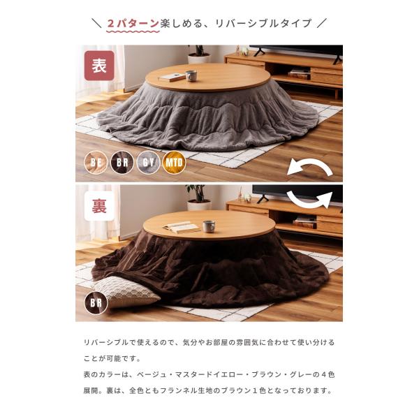 こたつ布団 円形 おしゃれ 幅225cm 奥行225cm 防寒 冬 こたつ用品 こたつ掛け布団 コタツ布団 コタツ グレー ベージュ マスタード イエロー ブラウン 座椅子 シンプル 2WAY 軽量 軽い 大きめ 大判 リバーシブル 両面 北欧 直径 布団 ふわふわ 洗える 洗濯可 ポイント利用